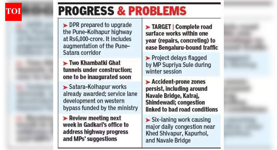 पुणे: केंद्रीय रस्ते वाहतूक आणि महामार्ग मंत्री नितीन गडकरी यांनी गुरुवारी सांगितले की, मंत्रालयाने सध्याचा पुणे-कोल्हापूर महामार्ग सुधारण्यासाठी 6,000 कोटी रुपये खर्चून सविस्तर प्रकल्प अहवाल (डीपीआर) तयार केला आहे. पुणे-सातारा कॉरिडॉरच्या विस्तारीकरणाचाही या योजनेत समावेश आहे.हिवाळी अधिवेशनात बारामतीच्या खासदार सुप्रिया सुळे यांनी विचारलेल्या प्रश्नाला ते उत्तर देत होते.“सरकार डीपीआरची अंमलबजावणी सुरू करणार आहे. साताऱ्याजवळील खंबाटकी घाटाजवळ दोन बोगद्यांचे काम सुरू आहे. त्यातील एका बोगद्याचे लवकरच उद्घाटन होणार आहे,” ते म्हणाले. “महामार्ग अत्यंत महत्त्वाचा आहे आणि मंत्रालय या प्रकल्पाचा पुन्हा अभ्यास करत आहे. आम्ही पश्चिम बायपासच्या सर्व्हिस लेन विकसित करण्यासाठी मंत्रालयाचा निधी वापरत आहोत. सातारा ते कोल्हापूर दरम्यानच्या कामांना यापूर्वीच पुरस्कार देण्यात आला आहे, असे गडकरी म्हणाले.खासदारांनी दिलेल्या सूचनांसह महामार्ग प्रकल्प आणि संबंधित मुद्द्यांवर अधिक चर्चा करण्यासाठी पुढील आठवड्यात त्यांच्या कार्यालयात आढावा बैठकीचे नियोजन करण्यात आल्याचे त्यांनी सांगितले. बेंगळुरूच्या दिशेने जाणाऱ्या प्रवाशांचा त्रास कमी करण्यासाठी रस्त्याच्या पृष्ठभागाची कामे, दुरुस्ती आणि काँक्रिटीकरण इत्यादी कामे एका वर्षात पूर्ण करण्याचे मंत्रालयाचे उद्दिष्ट आहे.दरम्यान, या प्रकल्पाला विलंब होत असल्याचे सुळे यांनी सांगितले. “काही रस्त्यांच्या कंत्राटदारांना काळ्या यादीत टाकले आहे. काम कधी पूर्ण होणार?” ती म्हणाली.पुणे शहरातील नवले पुलासारख्या ठिकाणी अपघातांचे प्रमाण कमी झाले असले तरी अपघातप्रवण भागांची समस्या कायम असून या समस्येतून सुटका करण्यासाठी प्रयत्नांची गरज असल्याचेही सुळे यांनी सांगितले. पुलाच्या आजूबाजूला काळे ठिपके आहेत. “पुणे-सातारा रोडवरील खराब रस्त्यांच्या कामांचा शहरात मोठा परिणाम झाला आहे. शहरातील कात्रज, शिंदेवाडी आणि जवळपासच्या भागांसारख्या बाहेर पडण्याच्या मार्गांवर वाहतूक कोंडी होत आहे,” असे कात्रजचे रहिवासी चिन्मय जोशी यांनी सांगितले. विशेषत: रात्रीच्या वेळी या ठिकाणांहून पुण्यात येणारी अवजड वाहतूक धोक्याची ठरते, असे ते म्हणाले. विशेषत: सर्व भाग अपघात प्रवण बनल्यामुळे या भागांमध्ये स्थानिकांना ये-जा करणे कठीण झाले आहे. “पुणे आणि आजूबाजूच्या परिसरातील अनेक नागरिक पुणे-कोल्हापूर महामार्गापासून दूर असलेल्या वाई आणि महाबळेश्वर सारख्या लोकप्रिय पर्यटन स्थळांना भेट देतात. धार्मिक सहलीसाठी कोल्हापूरला जाणाऱ्या पर्यटकांची संख्याही जास्त आहे. रस्त्यांची कामे अपूर्ण असल्याने सर्वच प्रवाशांचे हाल ह